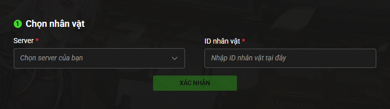 Nhập ID nhân vật, sau đó nhấn Xác nhận để hệ thống tìm thông tin.