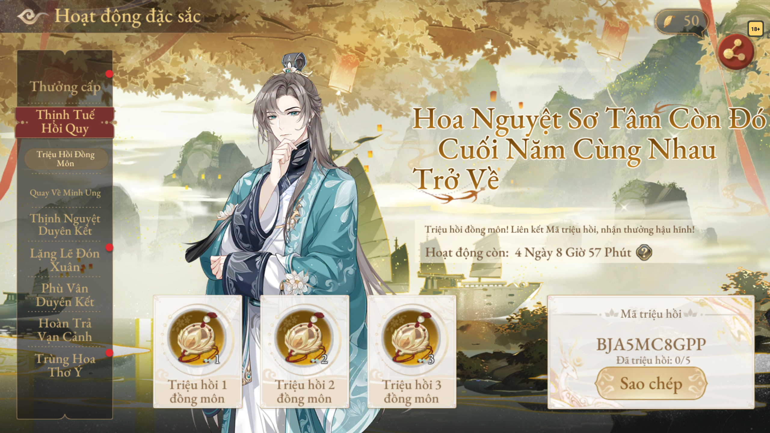 Trong sự kiện này, lần lần đầu tiên bạn chia sẻ Mã Triệu Hồi của mình, bạn có thể kiếm được Phần thưởng chia sẻ.